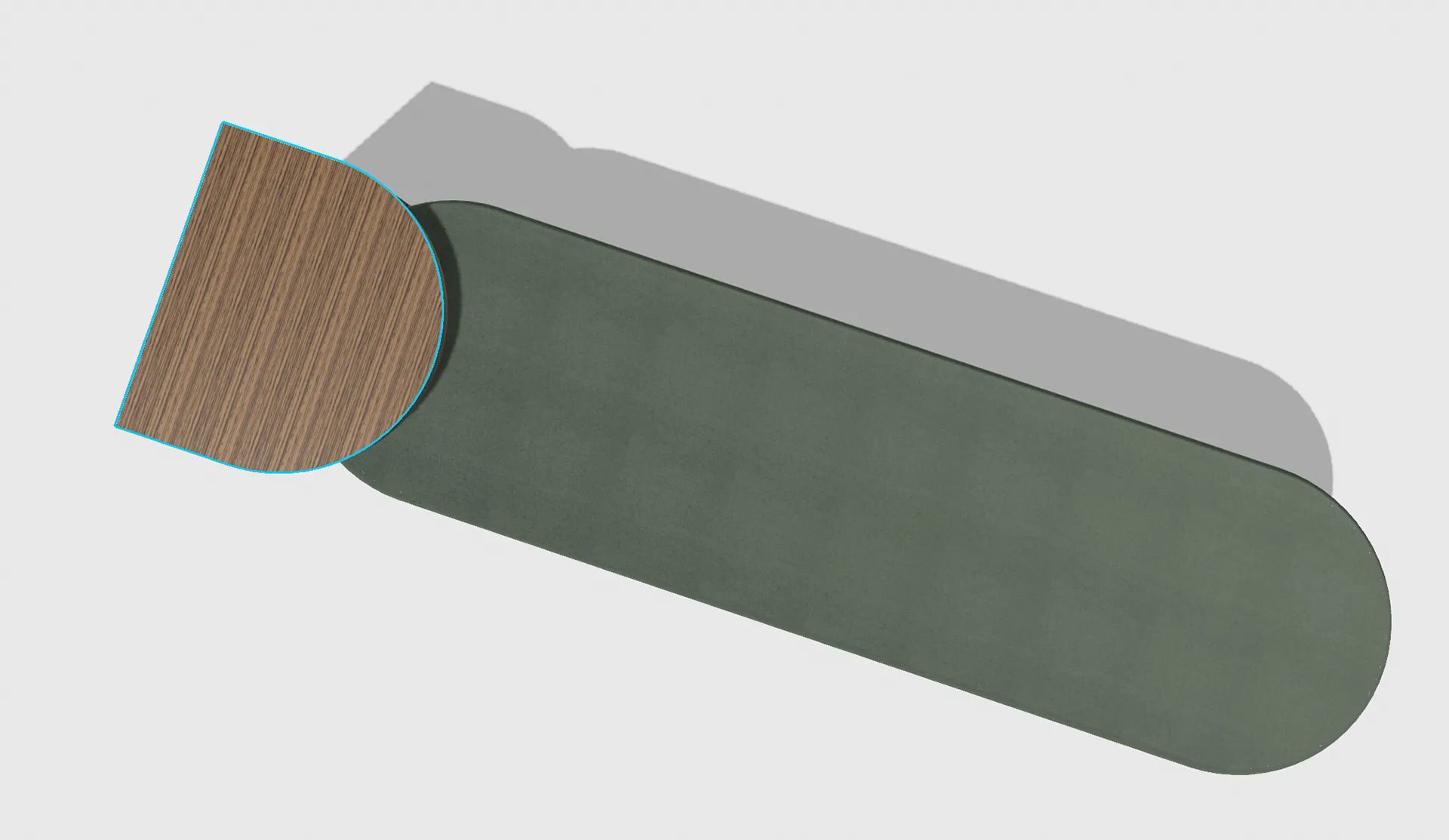 Les éléments en bois sont réalisés en placage Hubler – Noyer Dogato mat, reconnu pour son veinage chaleureux et sa sophistication naturelle.