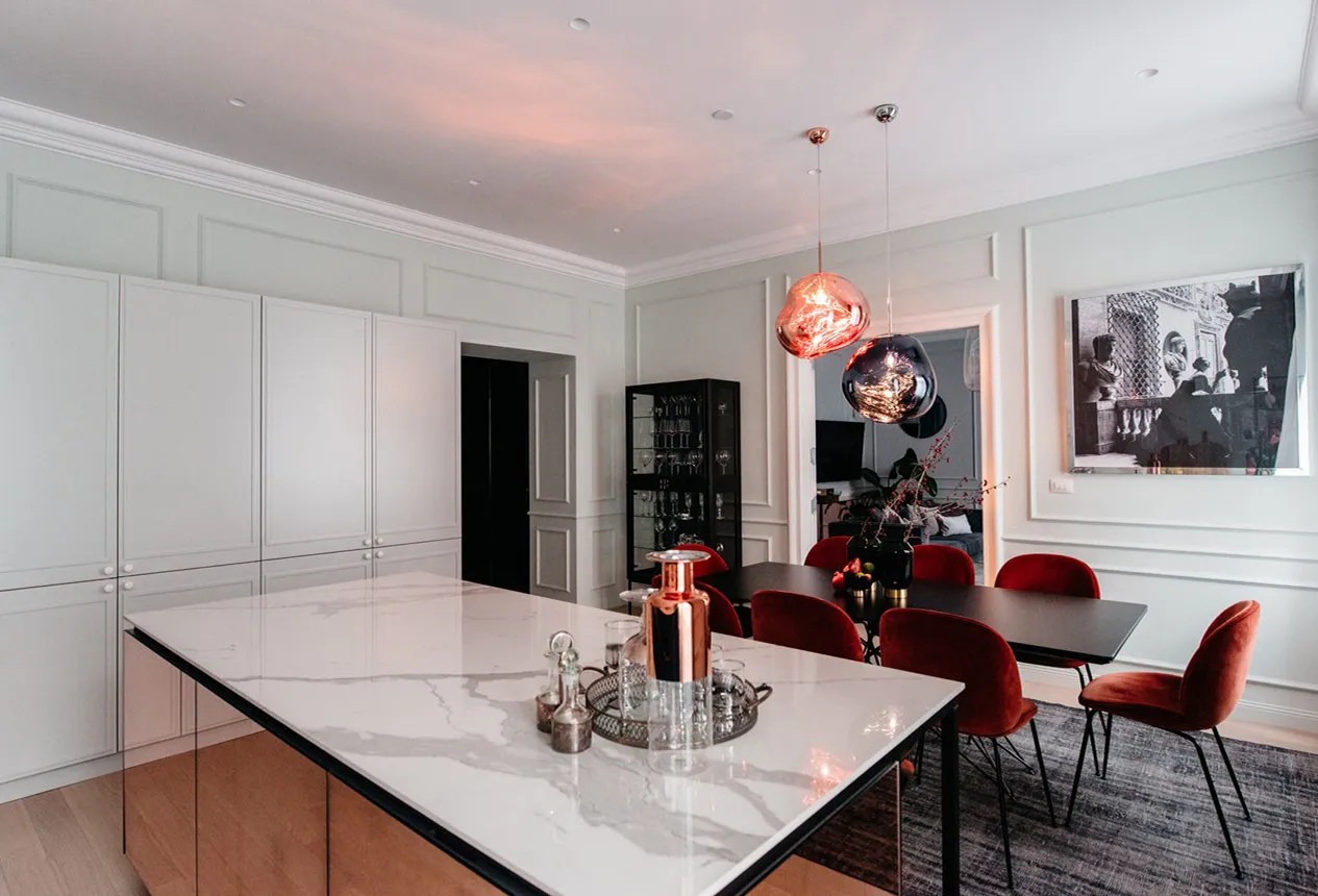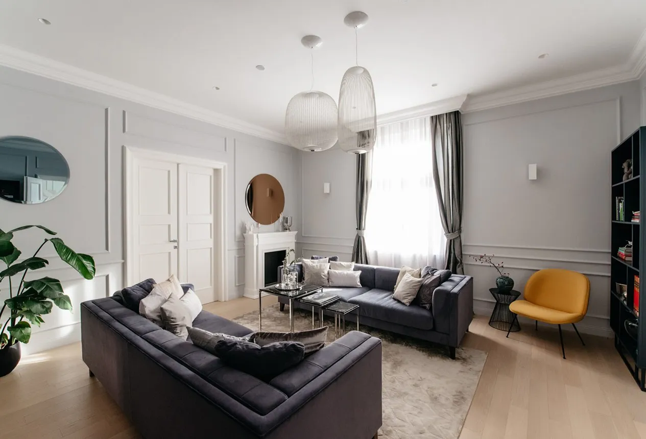 Des corniches comme éléments décoratifs entre le plafond et le mur. Des rosaces qui transforment le style de votre intérieur